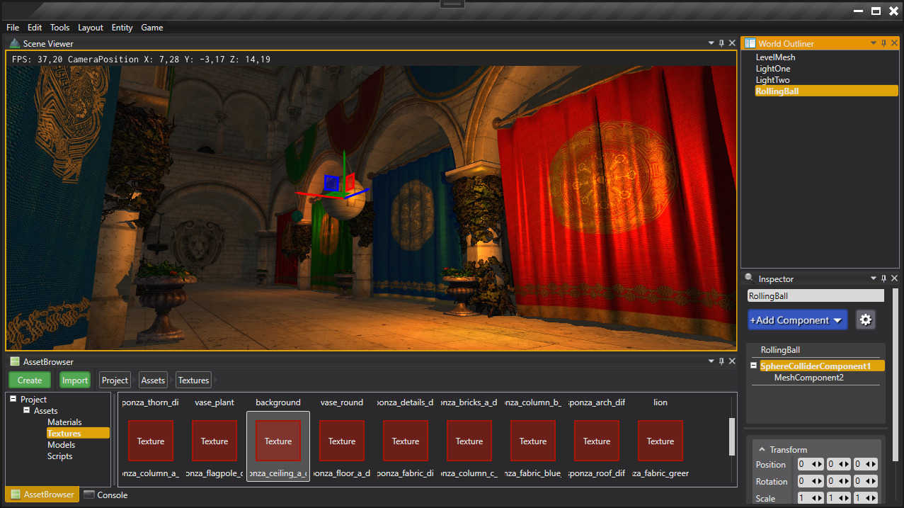 During our internship at Envision Entertainment where we were both working as tools programmer, we learned how to utilize the WPF framework for applications. While the decision to use this framework for the engine editor limited us to the Windows operating system, we still had to pick our battles and came to the conclusion that Windows is the primary game development platform anyway. That way we did not have to invest time into learning another cross-platform framework like Qt and could focus more on the actual content of the engine and editor.